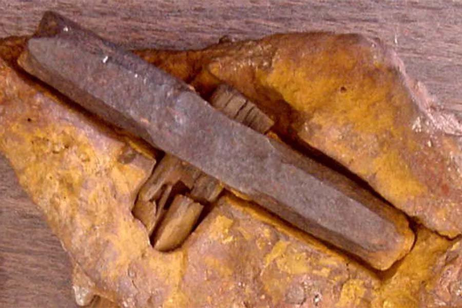 Хотя это очень крутая находка, горная порода не такая древняя, как кажется. Вероятно, какой-то шахтер уронил молот столетие назад или, возможно, чуть раньше, после чего вокруг него образовалась скала. Это не было, повторяю, не доказательством существования Флинтстоунов.