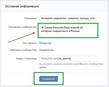 Следует указать пользу конкретного паблика, а также привести основные факты, касающиеся информации, содержащейся в нем. Добиться внимания пользователей помогут эмодзи, этими дополнениями можно запросто разделить описание на смысловые блоки.