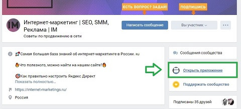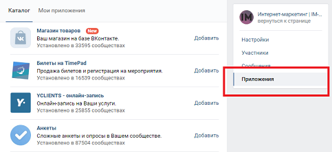 Корректировать настройки можно из сообщества, для этого достаточно прожать пункт «Приложения».