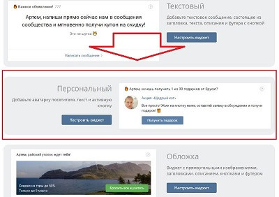 Существует 3 варианта сообщений: текст, с аватаркой и на обложке паблика, вторая разработка будет лучше всего. Остальные два приветствия считаются малозаметными, они способны сливаться с рисунком. На завершающей стадии автор придумывает название, слова для кнопки и сохраняет виджет.