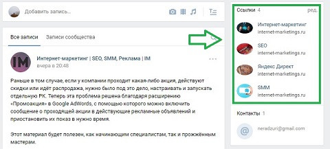 Ссылки паблика также сделают интерфейс крутым и очень увлекательным, наглядно посмотреть на оформление поможет иллюстрация ниже.