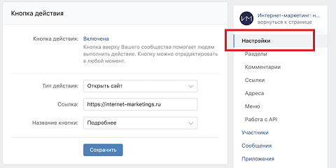 Кнопка действия позволяет направить людей на сайт или другую соцсеть, настраивается дополнение так: