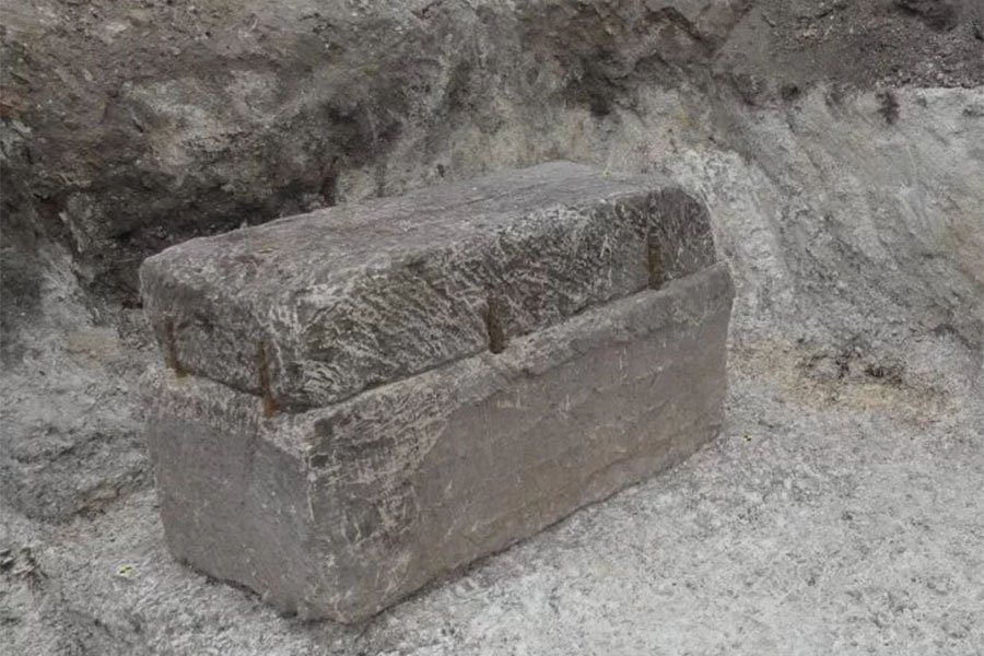 Во время недавних раскопок ученые обнаружили известняковый саркофаг высотой 1 метр, длиной 1,6 метра и шириной 0,8 метра и весом в 770 кг, удерживаемой на месте железными колышками, запечатанными свинцом. Археологи сначала сделали рентген саркофага, а затем использовали эндоскопическую камеру. Внутри они нашли скелет женщины, а также ряд других предметов, в том числе зеркало.