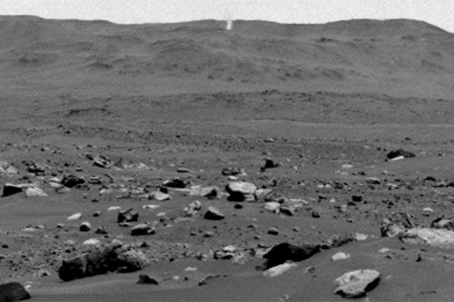В конце августа марсоход НАСА Perseverance («Настойчивость») запечатлел на Марсе пылевого дьявола. Произошло это 899-й марсианский день, или сол, миссии, движущейся вдоль западного края марсианского кратера Джезеро.