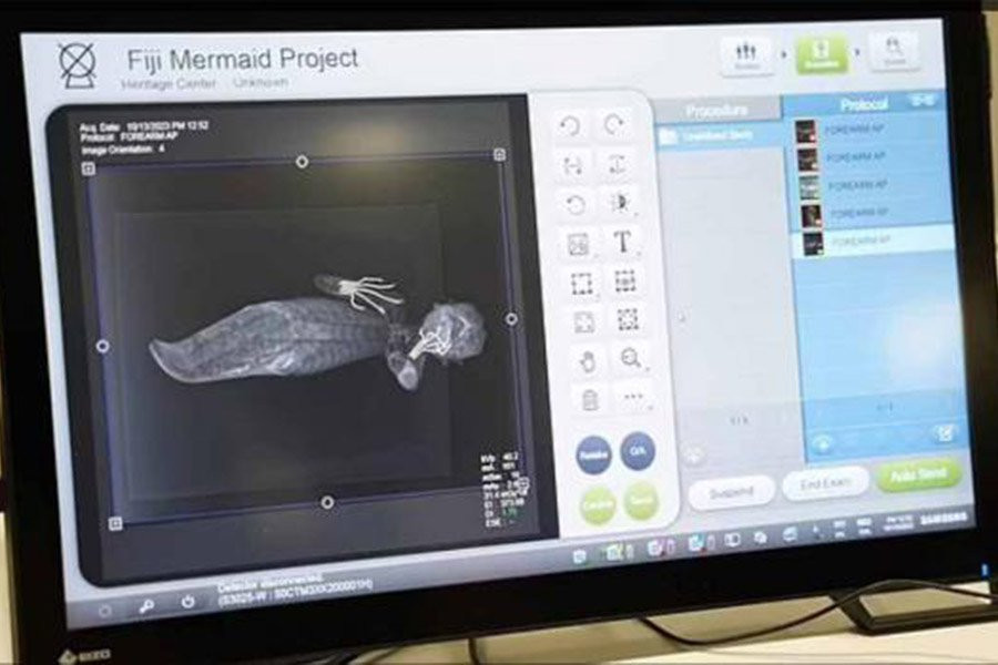 Этот метод сканирования позволяет им исследовать артефакт спереди назад и даже из стороны в сторону. Они также могут оценить, простирается ли полость уха до места, где она будет соединяться с мозгом. Таким образом, процесс компьютерной томографии применяется ко всем частям этой русалки Фиджи, включая голову, лицевую область, грудную область и конец хвоста.