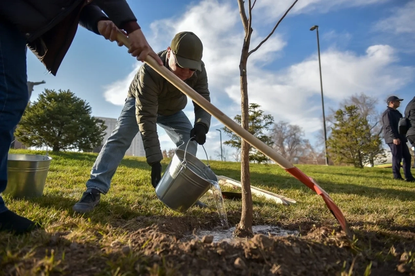 В рамках осенней высадки деревьев, мэр Бишкека Айбек Джунушалиев присоединился к мероприятию по озеленению города. Как сообщает мэрия, на пересечении улиц Тыныстанова и проспекта Чуй были посажены 14 ив. Кроме того, на улице Саманчина, в районе пересечения с улицей Байтик баатыра, также появились саженцы клена.