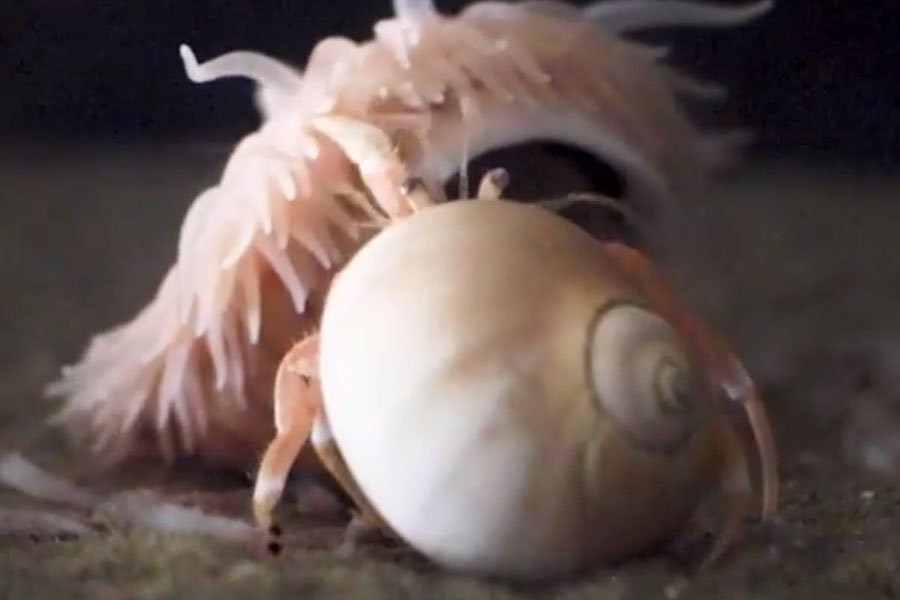 Оказалось, что анемона служит раку хорошим укрытием, она надежно защищает «хозяина» от хищников, и не дает паразитам обосновываться на нем.