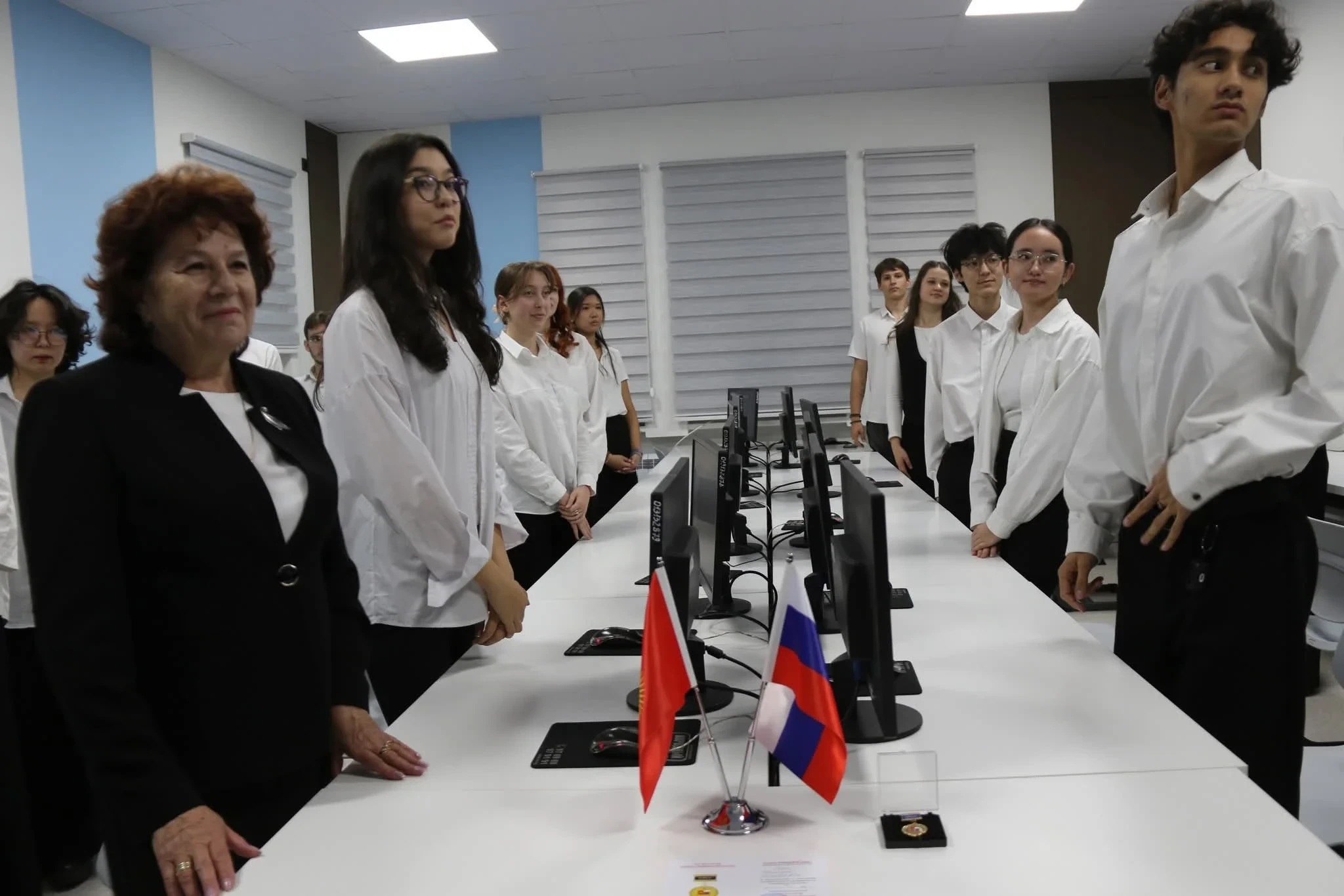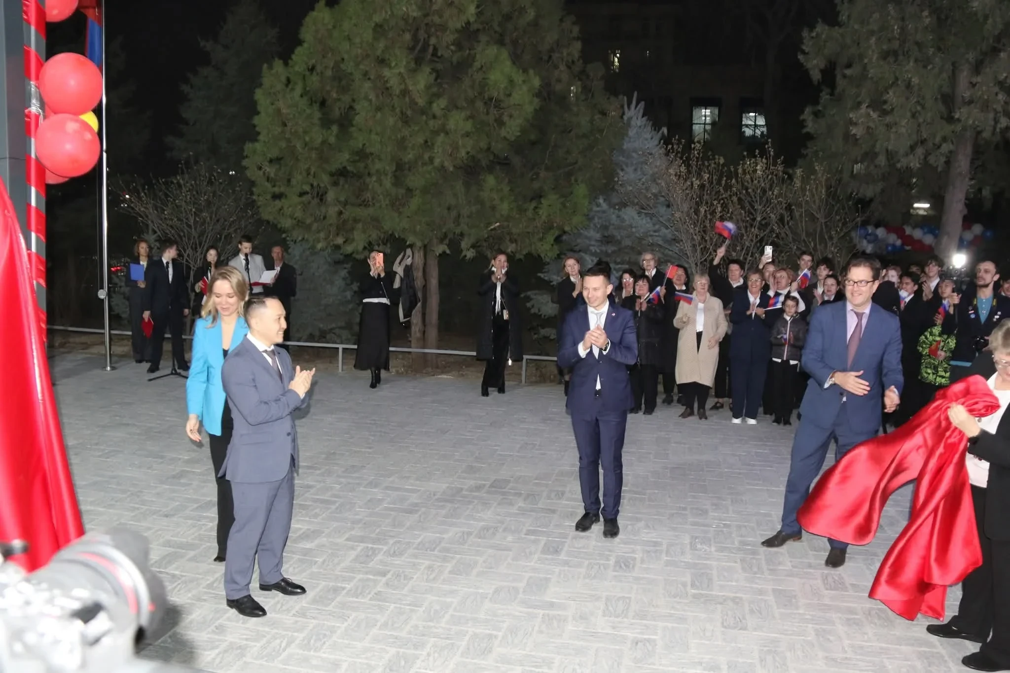 В церемонии приняли участие такие высокопоставленные лица, как первый заместитель министра науки, высшего образования и инноваций КР Айбек Чотонов, а также ректор КРСУ Сергей Волков и представители Министерства науки и высшего образования РФ, преподаватели и учащиеся школы.