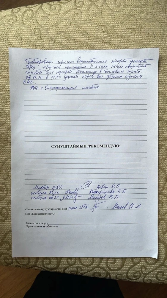 На место происшествия в ночное время прибыла аварийная бригада из МП "Бишкектеплосеть", составившая акт о затоплении. Днем представители мэрии также провели осмотр подъезда.