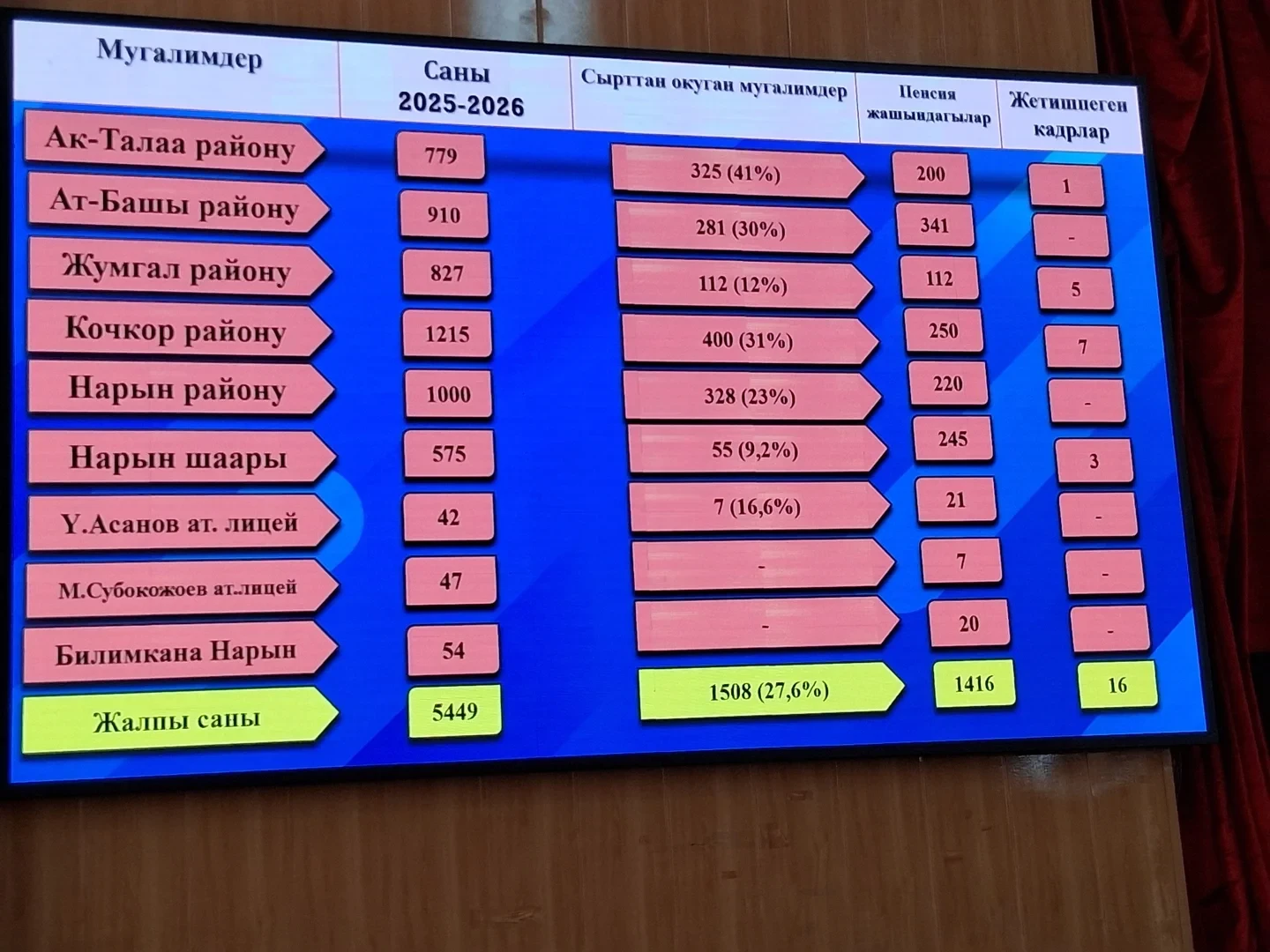 В Нарынской области в рамках программы «Алтын Казык» произошло сокращение 222 учителей, при этом наблюдается нехватка 16 педагогов. Об этом на недавней коллегии сообщила Айдана Иманалиева, заместитель полномочного представителя президента в регионе.
