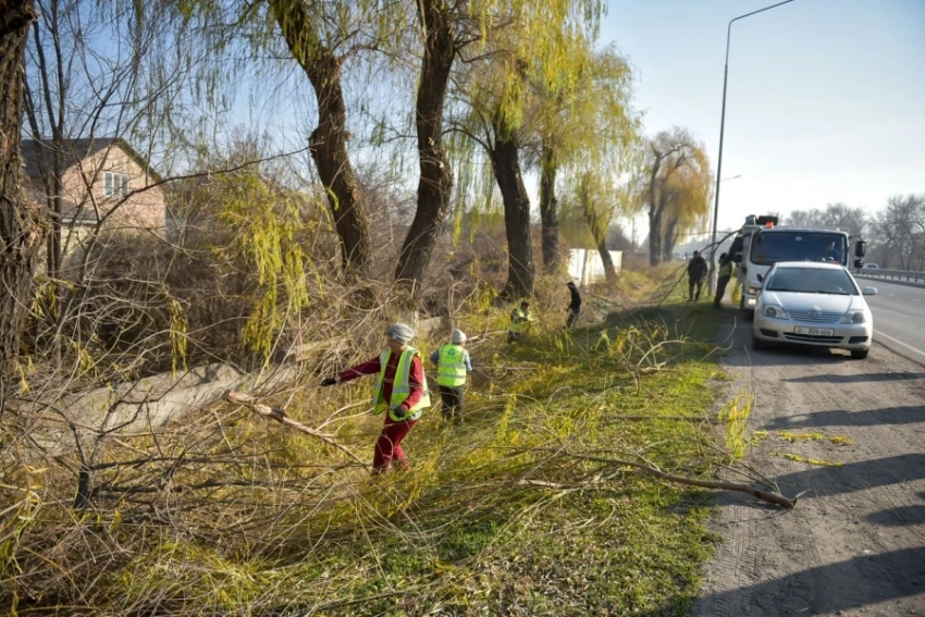 На Васильевском тракте в Бишкеке обрезали деревья. Горожане могут забрать ветки