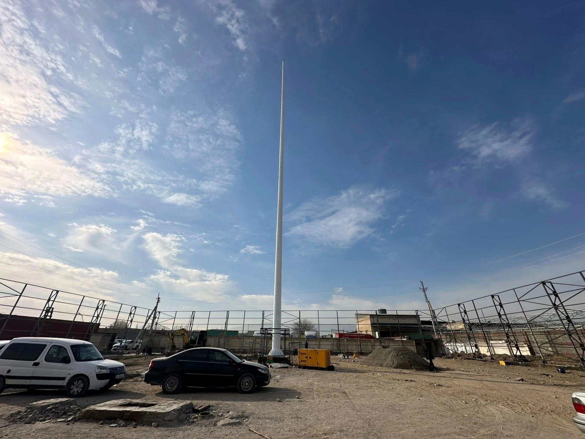 На пограничном пункте «Достук» в городе Ош устанавливают 45-метровый флагшток