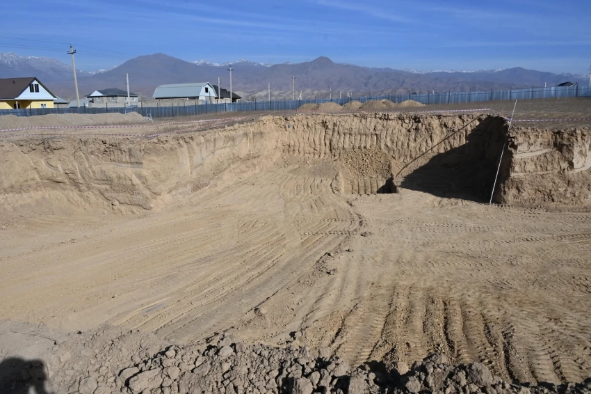 Министр строительства, архитектуры и жилищно-коммунального хозяйства Нурдан Орунтаев проверил, как идут работы по возведению нового детского сада на 140 мест в Токтогуле, расположенном в Джалал-Абадской области.