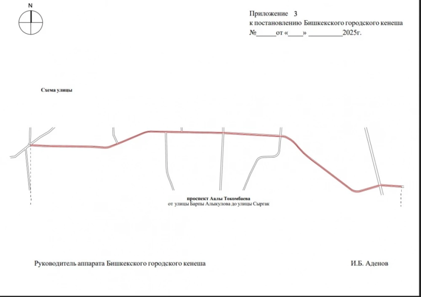 - улицы Жайыла Баатыра и Кайыкова, проспекты Абсамата Масалиева, Аалы Токомбаева - в проспект Токомбаева;