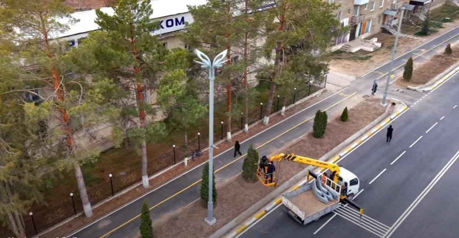 Главная » Общество » В центре Таласа устанавливают современные осветительные конструкции