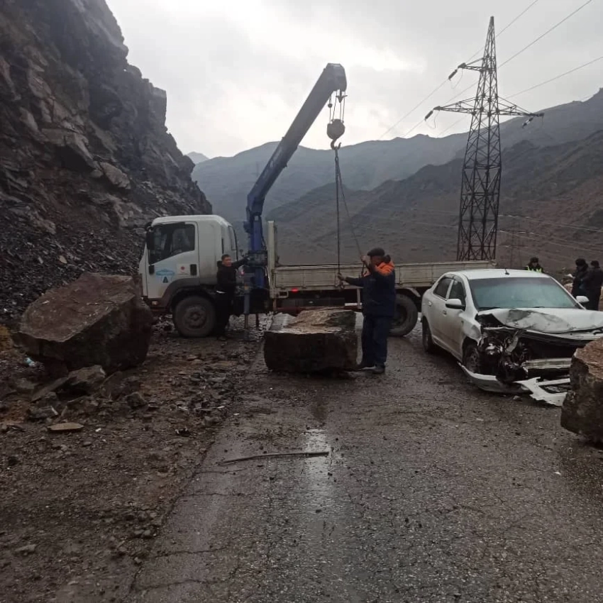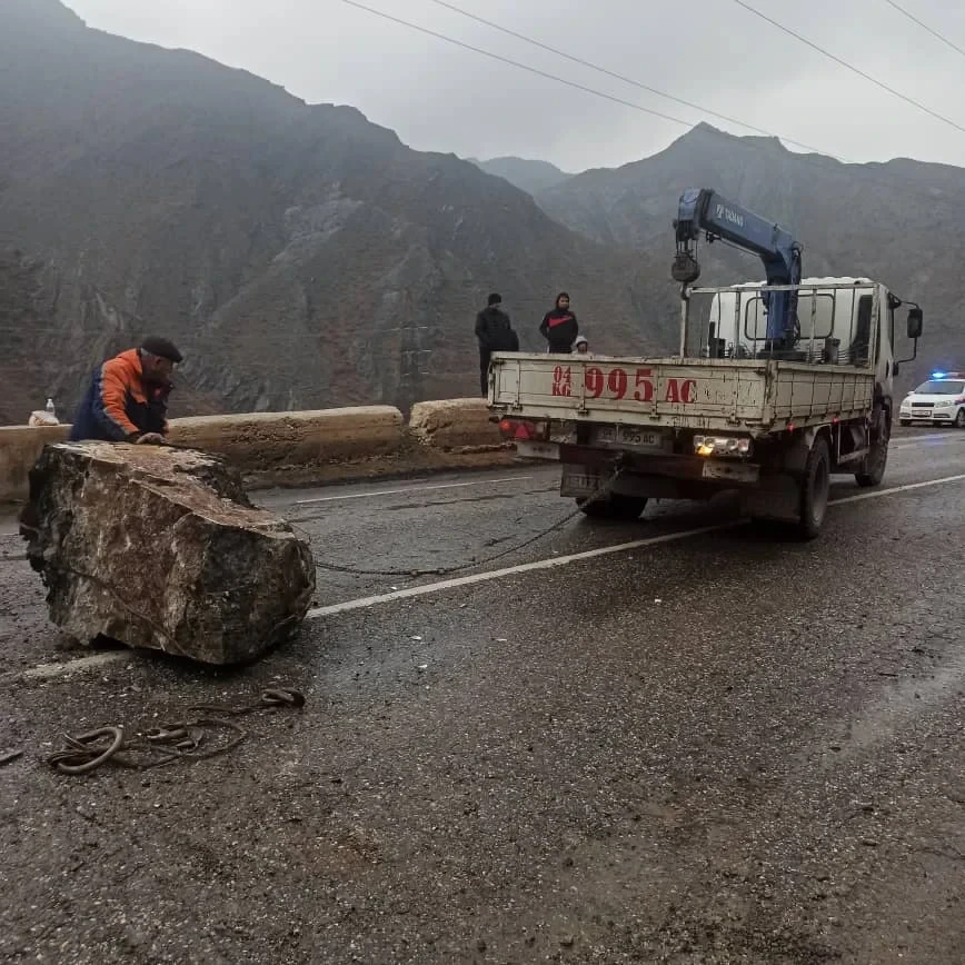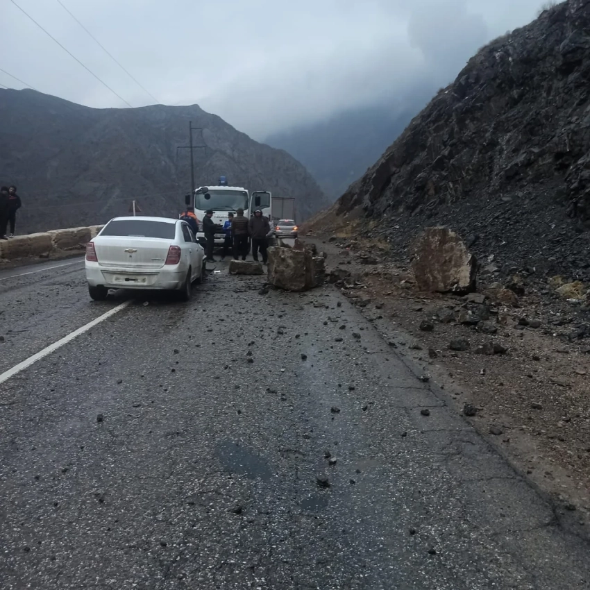 Следует отметить, что инцидент произошел сегодня в 08:00 на участке дороги с 427 по 451 километр, где дождь спровоцировал обрушение камней с горного склона, в результате чего один автомобиль получил повреждения.