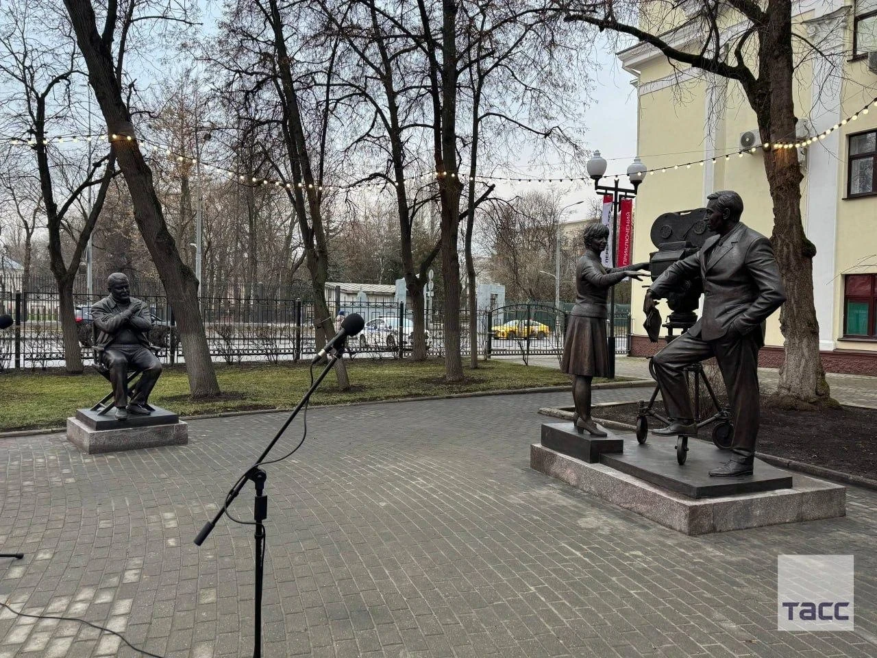 Церемония прошла в уютном сквере у входа в студию, где присутствовал директор СВР Сергей Нарышкин. Бронзовая скульптура, созданная Андреем Ковальчуком, демонстрирует творческий процесс: режиссер Татьяна Лиознова беседует с Вячеславом Тихоновым, который сыграл известного разведчика Максима Исаева-Штирлица. Кроме того, отдельно представлена фигура сценариста Юлиана Семенова, наблюдающего за происходящим.