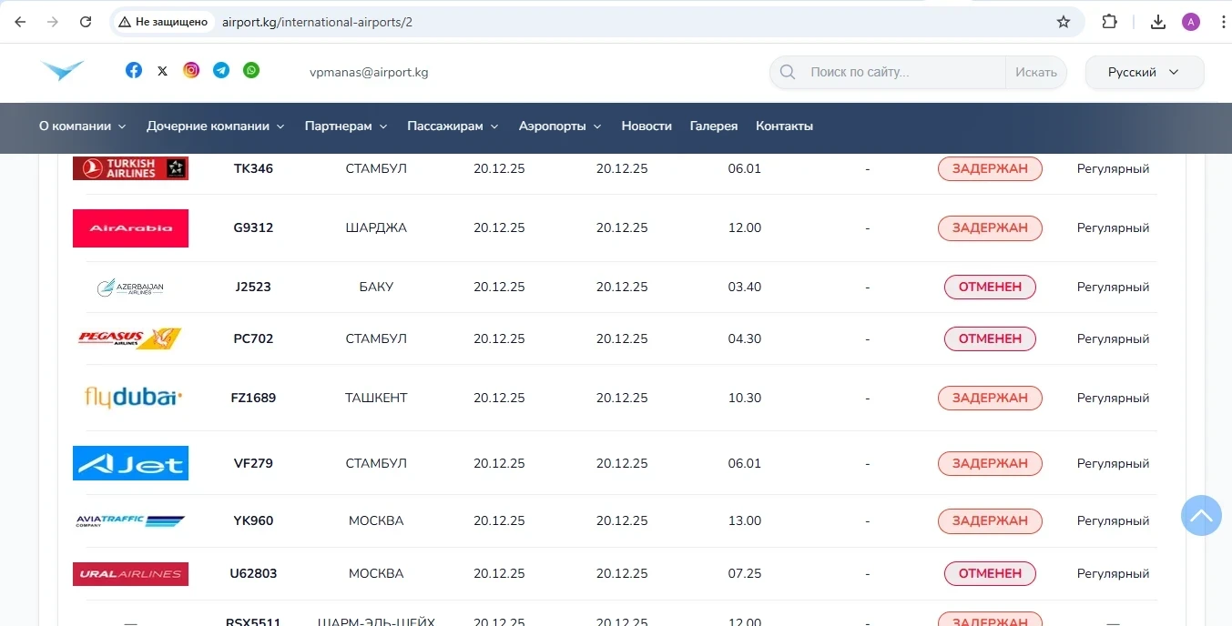 Из-за тумана аэропорт «Манас» не принимает рейсы