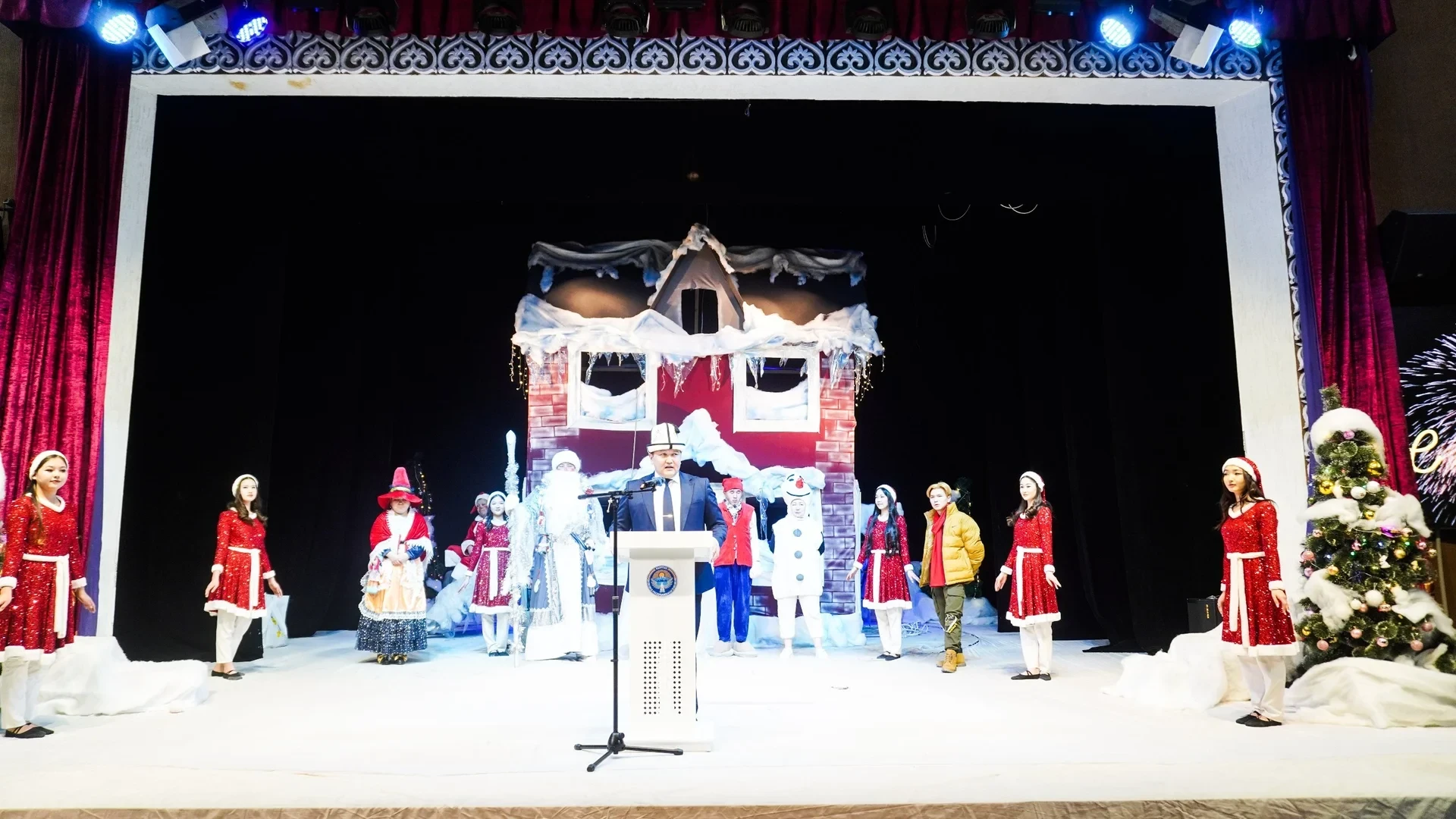 Для создания праздничной атмосферы артисты областного драматического театра имени К. Медетбекова представили театрализованное представление, основанное на сюжете фильма «Один дома». В конце мероприятия всем участникам вручили специально подготовленные подарки.