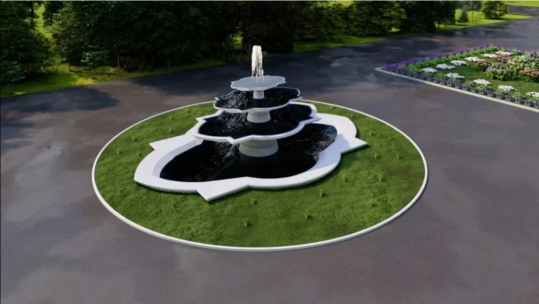Первая чаша уже залита, остальные будут установлены на месте. Все армокаркасы и опалубка находятся в полной готовности. В настоящее время осуществляется бетонная подготовка дна, после чего планируется установка каркаса и вязка арматуры. В течение этого месяца также будет проведена засыпка котлована и монтаж верхней части фонтана.