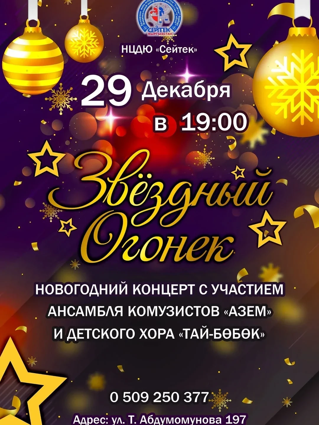 Концерт заслуженного артиста Кыргызской Республики Бека Борбиева станет ярким музыкальным событием, наполненным праздничной атмосферой.