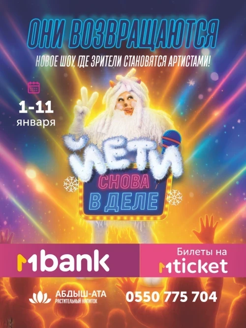 Вас ждёт встреча с любимыми персонажами — пушистыми Йети, которые проведут супершоу, и каждый сможет стать артистом!