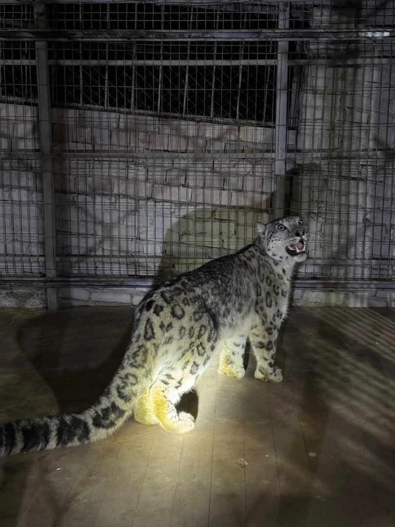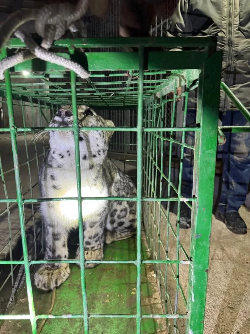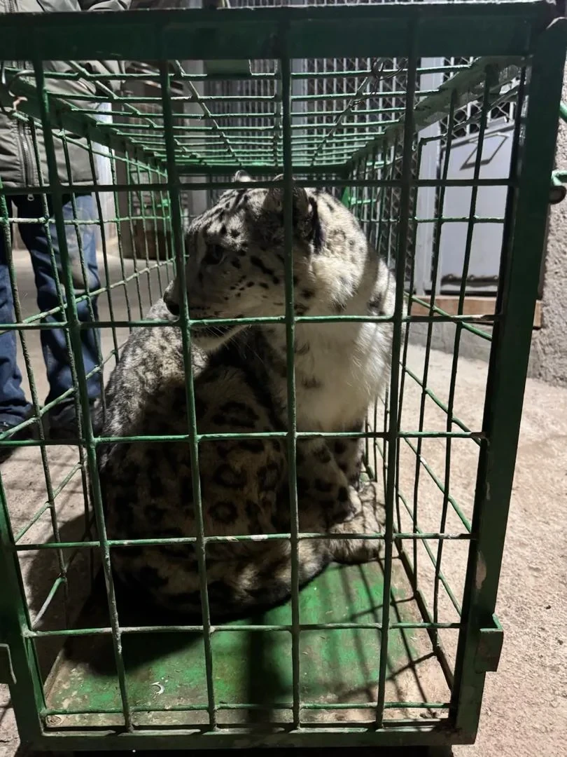 Согласно последующим сообщениям, снежный барс спустился с гор и запрыгнул на дерево. На место происшествия быстро прибыли егерь Чон-Кеминского государственного природного парка Ж. Чокоев и охотник У. Абыканов, которые в безопасных условиях помогли спустить животное с дерева.