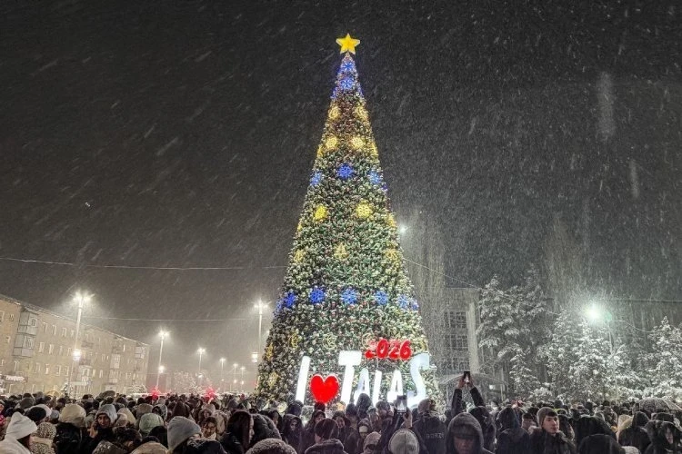 В Таласе состоялось торжественное открытие центральной площади города после реконструкции, одновременно была зажжена главная новогодняя елка.
