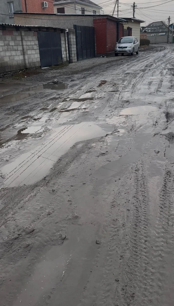 Жители также отмечают, что после дождей они вынуждены передвигаться по слякоти из-за отсутствия асфальтного покрытия.