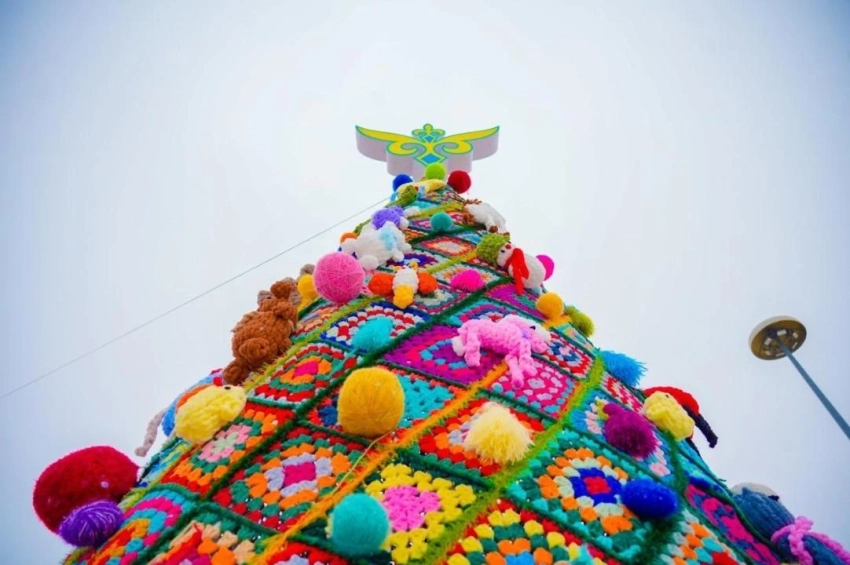 В Астане установили необычную новогоднюю елку — вязаную