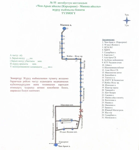 Схема движения автобуса №55