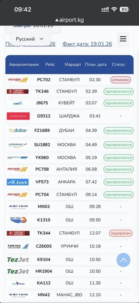 Так, турецкие авиакомпании Pegasus и Turkish Airlines сообщили об отмене своих рейсов. Кроме того, местная авиакомпания Tez Jet также отменила два рейса в Манас без подробных объяснений.