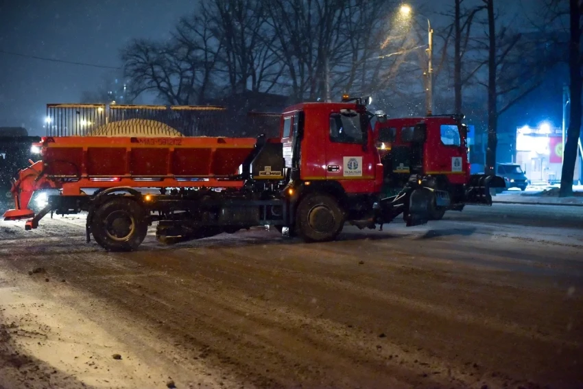 В целях предотвращения гололеда началась подсыпка противогололедных материалов. Очистка дорожной сети и тротуаров уже underway.