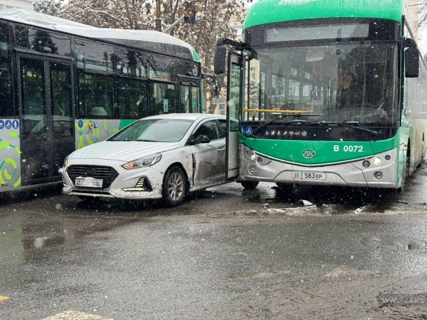 На пересечении улиц Тыныстанова и Московская в Бишкеке произошла авария, в которой столкнулись электробус и легковой автомобиль. Первоначальные данные свидетельствуют о том, что в результате инцидента никто не пострадал.
