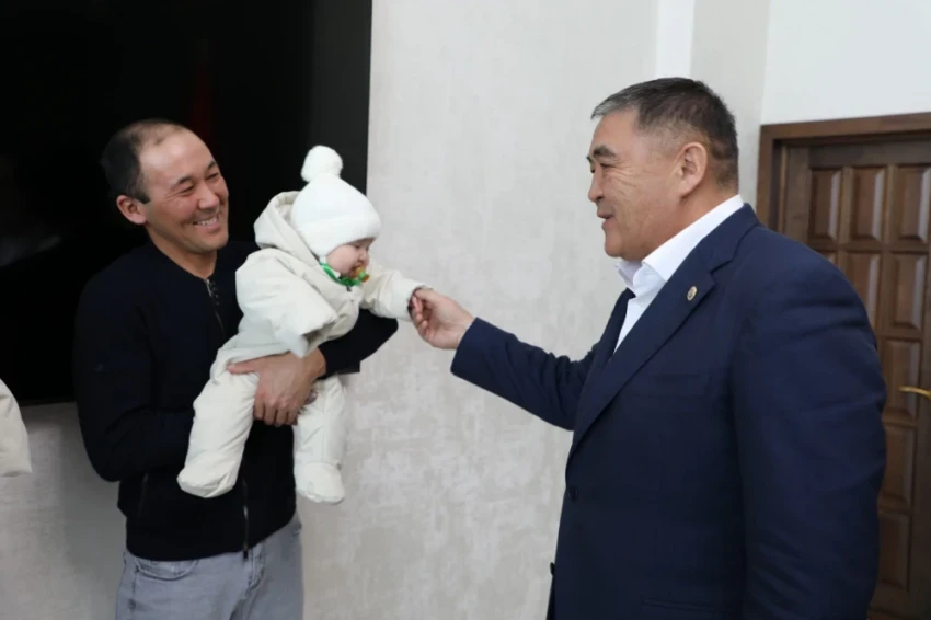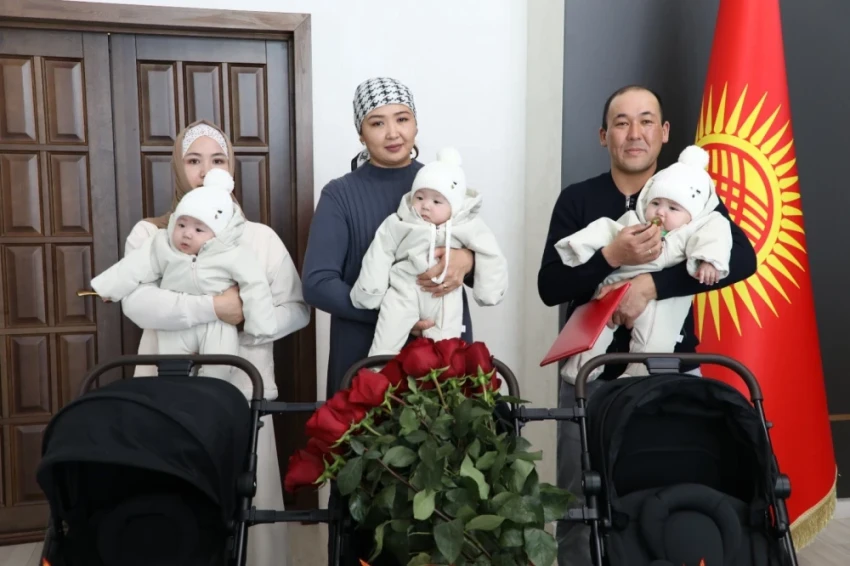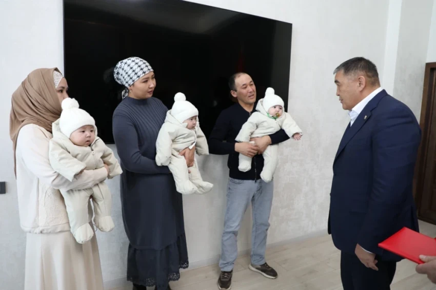 Камчыбек Ташиев лично вручил родителям тройняшек ключи от двухкомнатной квартиры