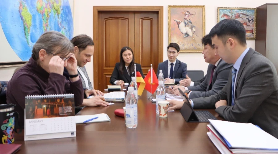 В ходе недавней встречи заместитель министра экономики и коммерции Кыргызстана Султан Ахматов обсудил вопросы с Никласом Вагнером, уполномоченным МИД Германии по Восточной Европе, Южному Кавказу и Центральной Азии, а также с Чрезвычайным и Полномочным Послом ФРГ в Кыргызстане Моникой Ленхард.