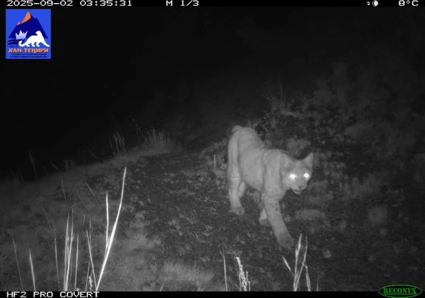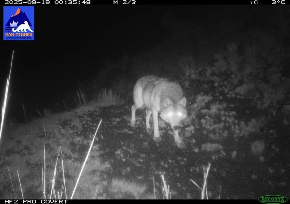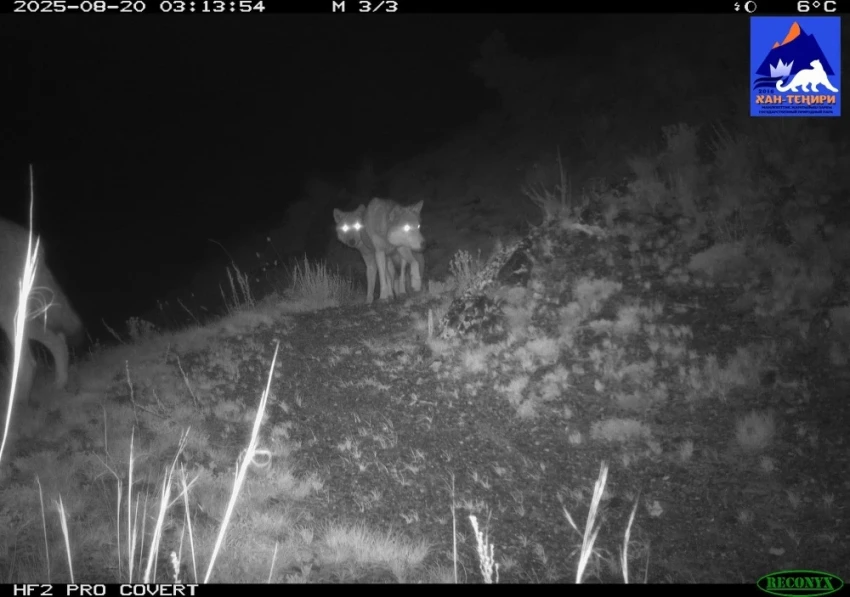 Фотоловушка в парке "Хан-Тенири" запечатлела снежного барса, рысь и волков.