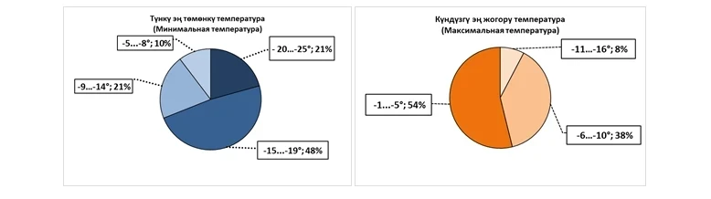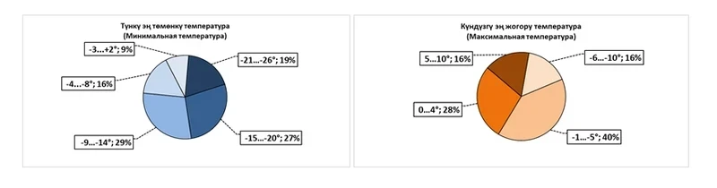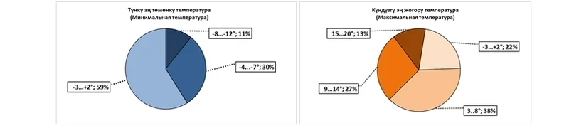 В этом месяце ожидается, что средняя температура воздуха будет на 1-2 градуса выше климатической нормы и составит от 0 до 2 градусов тепла, в то время как в предгорных зонах и в Кеминской долине температура может опуститься до -1…-3 градусов мороза.