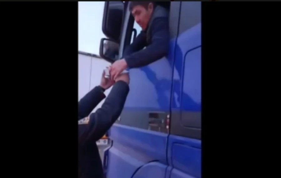 Водители грузовых автомобилей, ожидающие на кыргызско-казахской границе, получили горячие обеды от милиции Кыргызстана. Видео этого события появилось в социальных сетях.