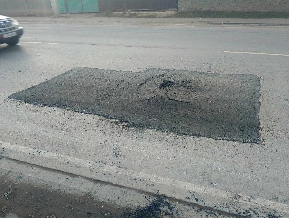 Житель города недоумевает о причинах этой ситуации и призывает местные власти обратить внимание на проблему некачественного дорожного ремонта в столице.