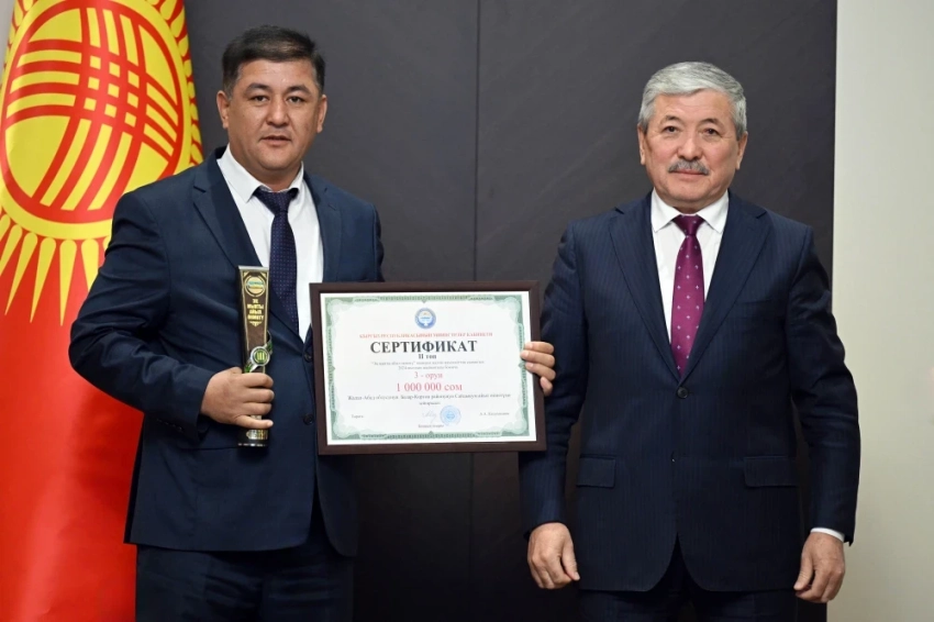 - 3-е место - айыл окмоту айылного аймака Сайдыкум из Базар-Коргонского района Джалал-Абадской области с призом в 1 миллион сомов.