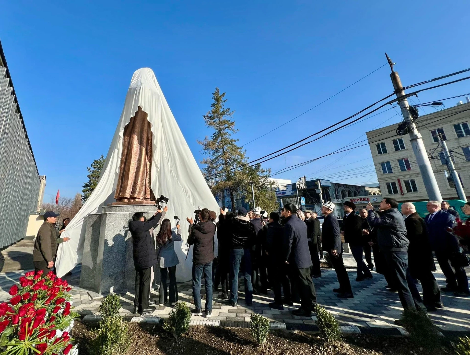 На церемонии присутствовали мэр города Женишбек Токторбаев, полномочный представитель президента в Ошской области Аманкан Кенжебаев, заместитель министра культуры, информации, спорта и молодежной политики Аскаралы Мадаминов, министр культуры Узбекистана Озодбек Назарбеков, а также аким Андижанской области Шухрат Абдурахманов, вместе с жителями города.