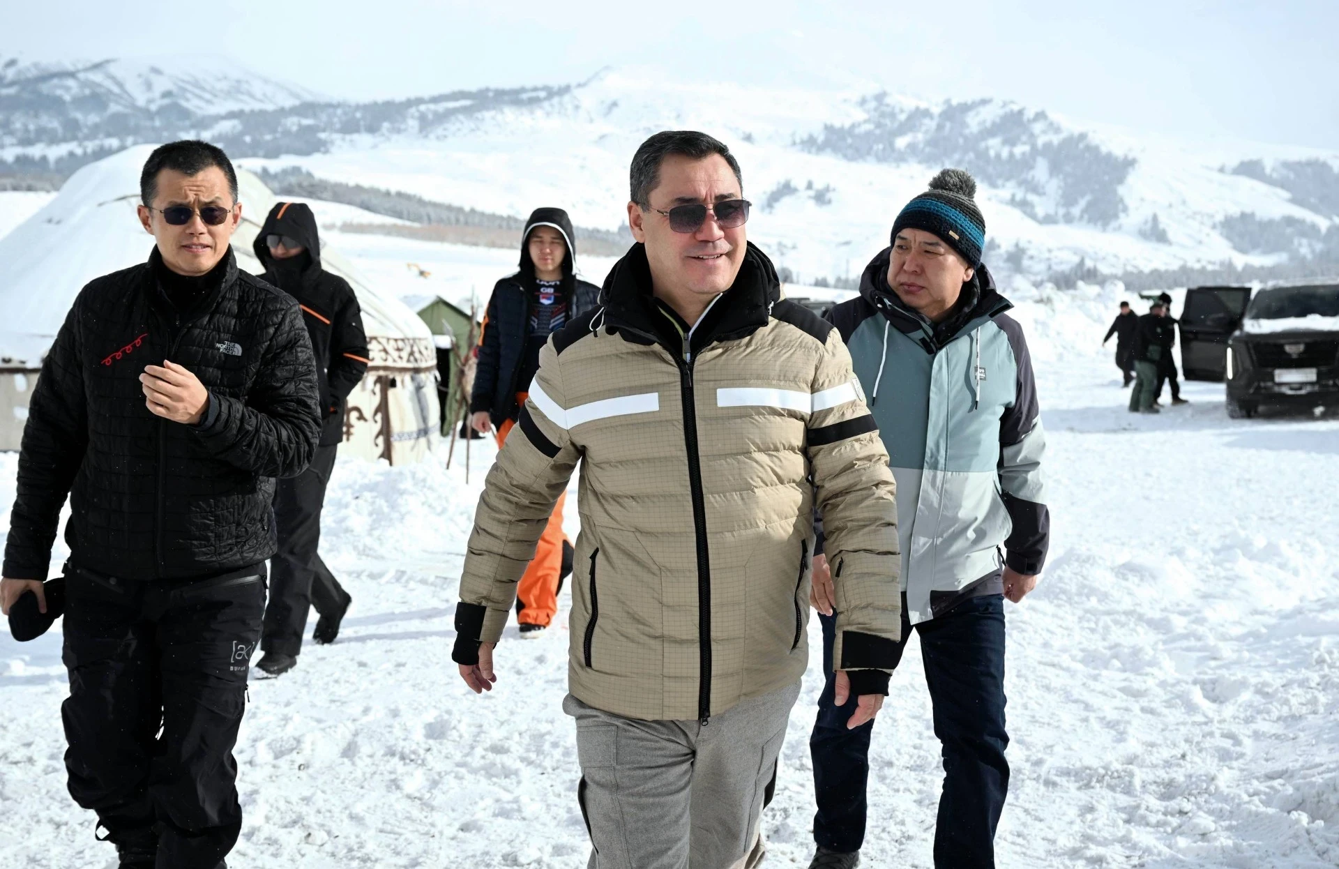 В Жыргалане Садыр Жапаров и Чанпэн Чжао покатались на лыжах в режиме фрирайд
