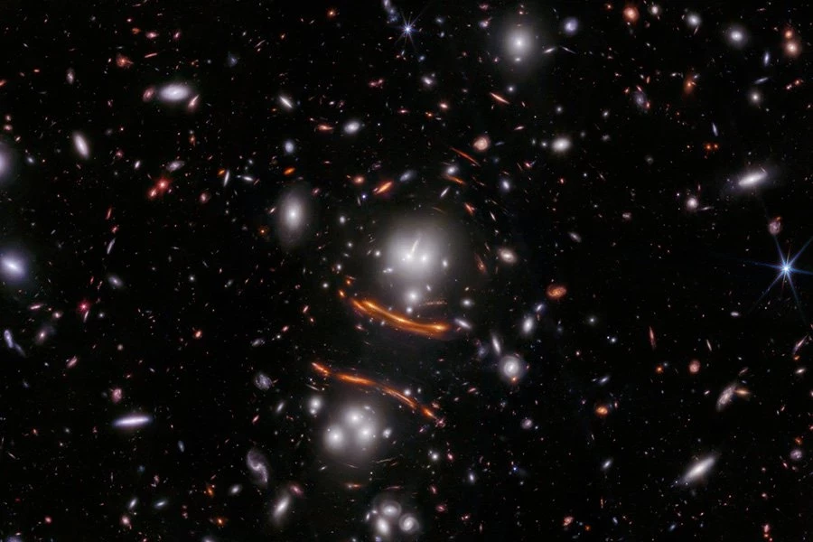 Астрономам известно около 1000 случаев, когда, как предсказывает общая теория относительности Альберта Эйнштейна, сильная гравитация крупного объекта, например галактики или скопления галактик, искривляет свет, исходящий от ярких источников позади него. Скопления галактик — это несовершенные линзы, которые создают искаженные изображения. Но эллиптические галактики, симметричные сгустки звезд с плотными ядрами, аналогичны простым линзам, таким как линзы в очках или биноклях. Они могут преобразовать далекий яркий источник в элегантную размытую дугу света, известную как кольцо Эйнштейна, или в четыре дублированных изображения.