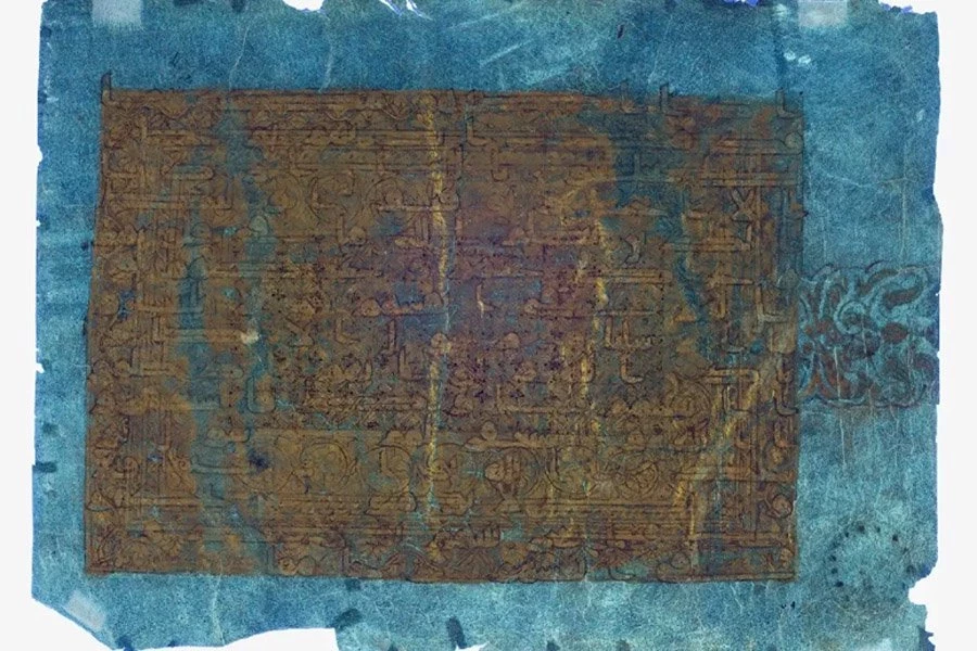 Команда ученых обнаружила стихи из суры «Ан-Ниса» под сложным слоем золотого орнамента на странице Голубого Корана, одного из важнейших образцов исламской каллиграфии.