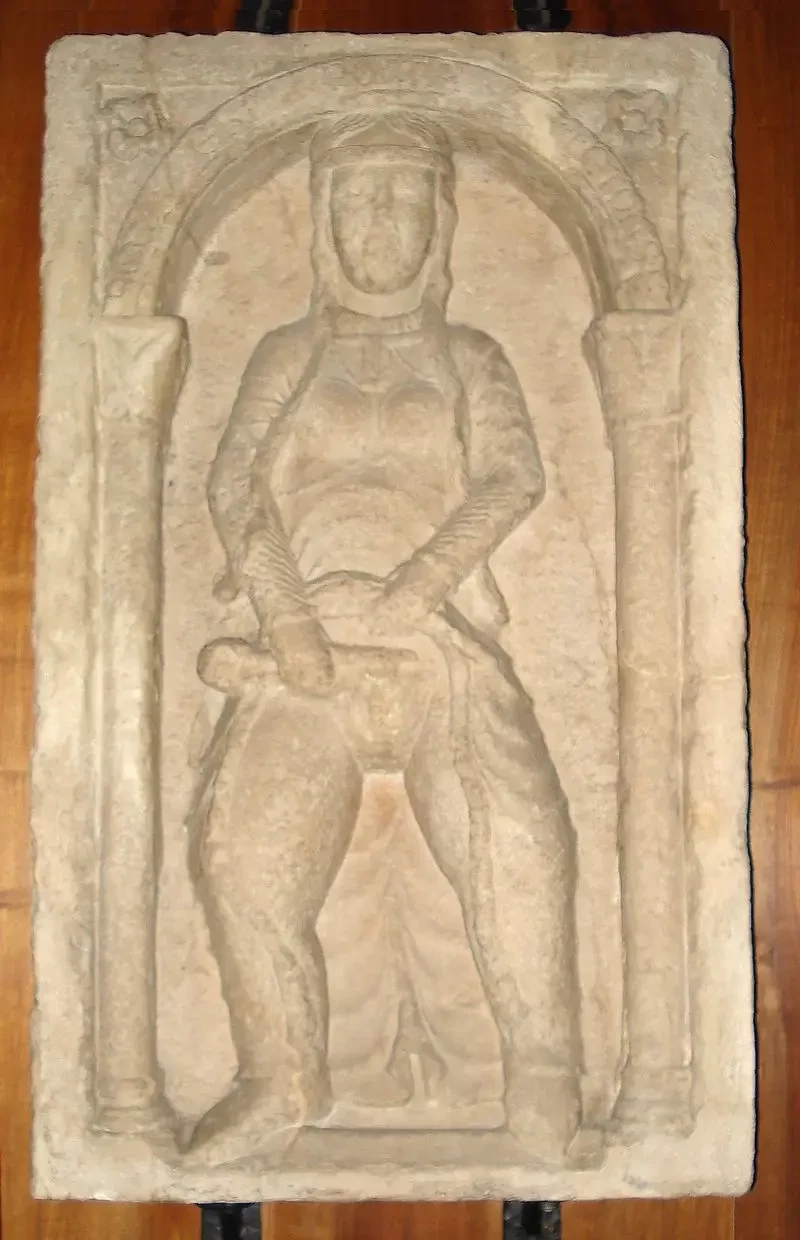 Женщина, бреющая лобковые волосы. Рельеф XII века, в настоящее время находящийся в Музее античного искусства в замке Сфорца в Милане