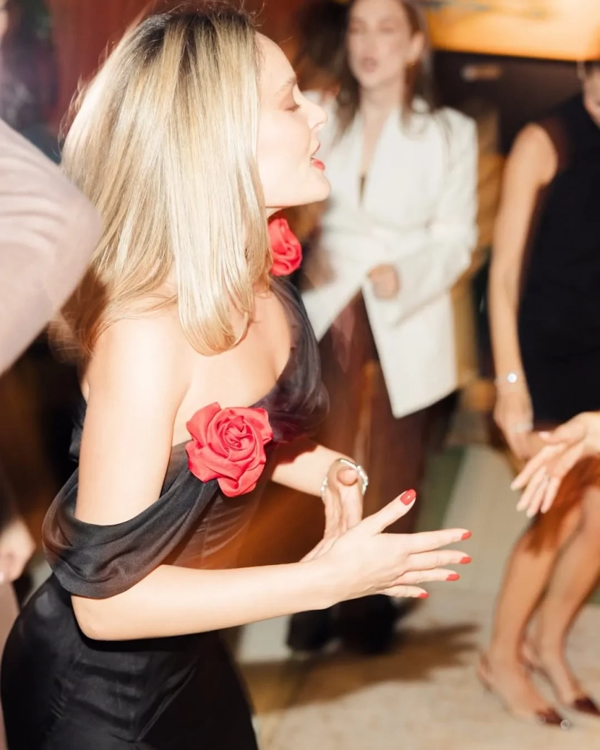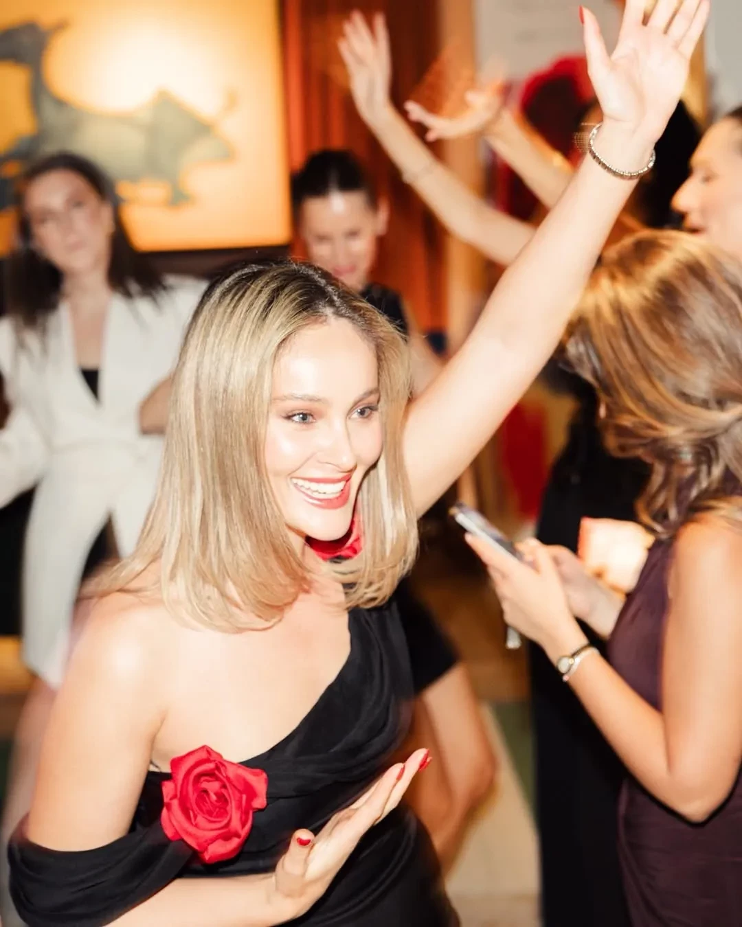 Асмат Чкотуа отметила день рождения в одном из столичных ресторанов в компании супруга и друзей, в том числе основательницы бренда Rosario Расиды Лакобы. Модный блогер поделилась снимками с праздника в инстаграме*. Для вечера именинница выбрала чёрное платье с розами Rosario, дополнив образ золотыми серьгами и красной помадой.