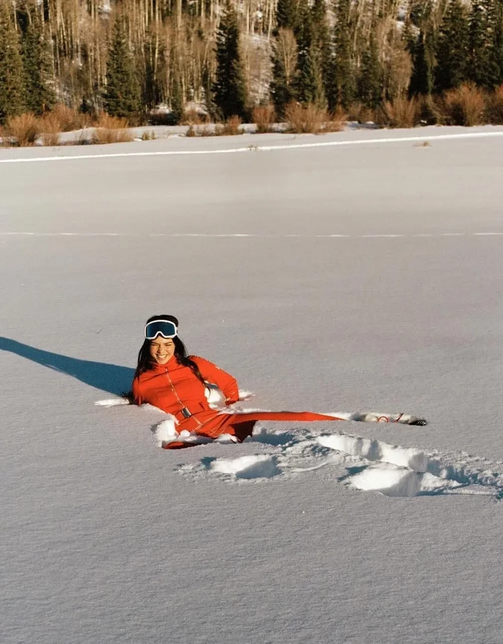 Самый удобный вариант одежды на склоне — конечно, комбинезон. Он плотнее прилегает к телу, поэтому шанс оголить или простудить спину минимален, да и выглядит максимально модно. Советуем поискать тот самый вариант для себя в винтажных лавках или просто собрать монообраз из куртки и брюк у известных брендов.
