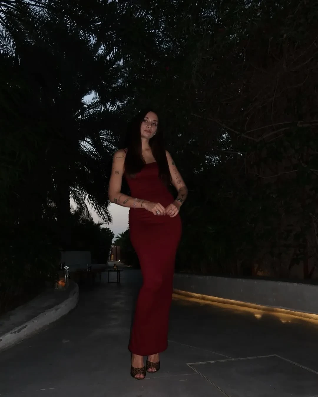 На фото модель и блогер позирует в облегающем алом платье и леопардовых мюлях на высоком каблуке. "Я в эре Джессики Рэббит", — подписала кадры Карина. Она добавила также фото своей сумки "биркин" и мужа с золотыми браслетами Van Cleef. Супруги уже несколько месяцев отдыхают в Эмиратах и публикуют снимки с дочерью.