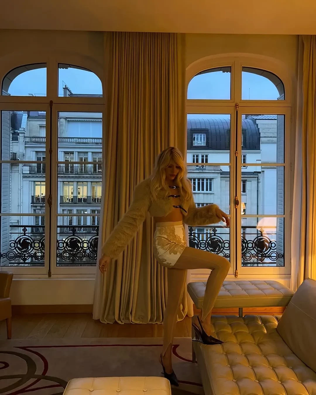 Елена Перминова опубликовала новые фото из своей недавней поездки в Париж, на которых позирует в образе slavic bimbo в номере отеля. 38-летняя бывшая девушка миллиардера Александра Лебедева примерила легинсы и юбку в бельевом стиле с короткой шубой. "Неопубликованное из Парижа", — подписала кадры Елена.